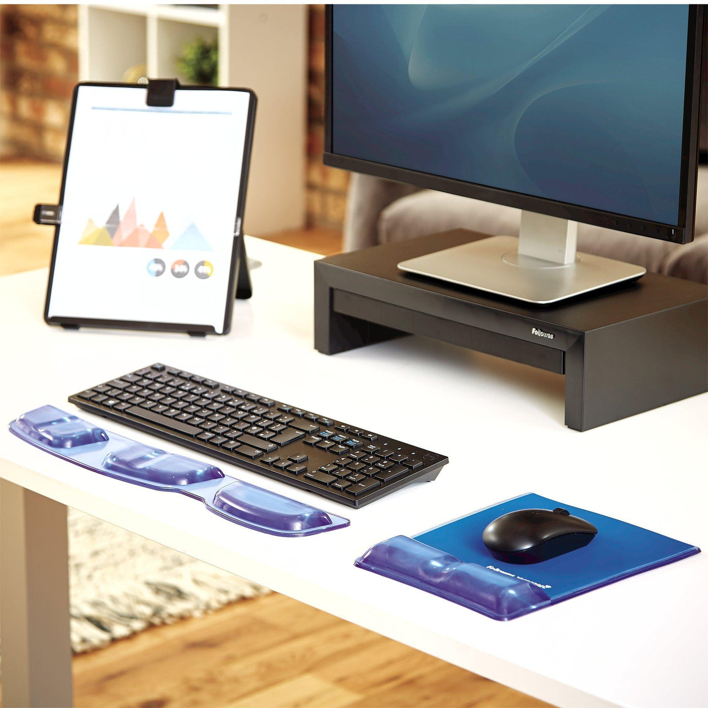 Wrist support with patented Health-V Channel relieves wrist pressure to help prevent carpal tunnel syndrome and to reduce typing fatigue. Self-adjusting gel support conforms to your wrist for personalized comfort. Optical/laser-friendly mouse pad improves mouse performance. Microban antimicrobial protection keeps the wrist support cleaner. Wrist support offers a smooth gel cushion with a clear cover.