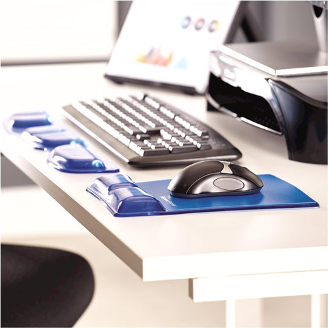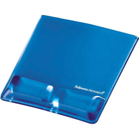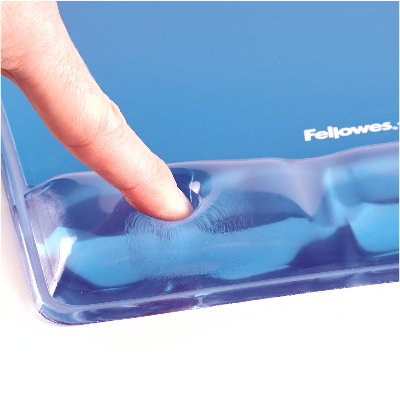 The Fellowes Wrist Support with proprietary Health-V Channel relieves wrist pressure to help prevent carpal tunnel syndrome! Self-adjusting gel support conforms to your wrist for personalized comfort. Optical/Laser-friendly mouse pad improves mouse performance. Microban antimicrobial protection keeps product cleaner. Smooth gel cushion with clear cover.
