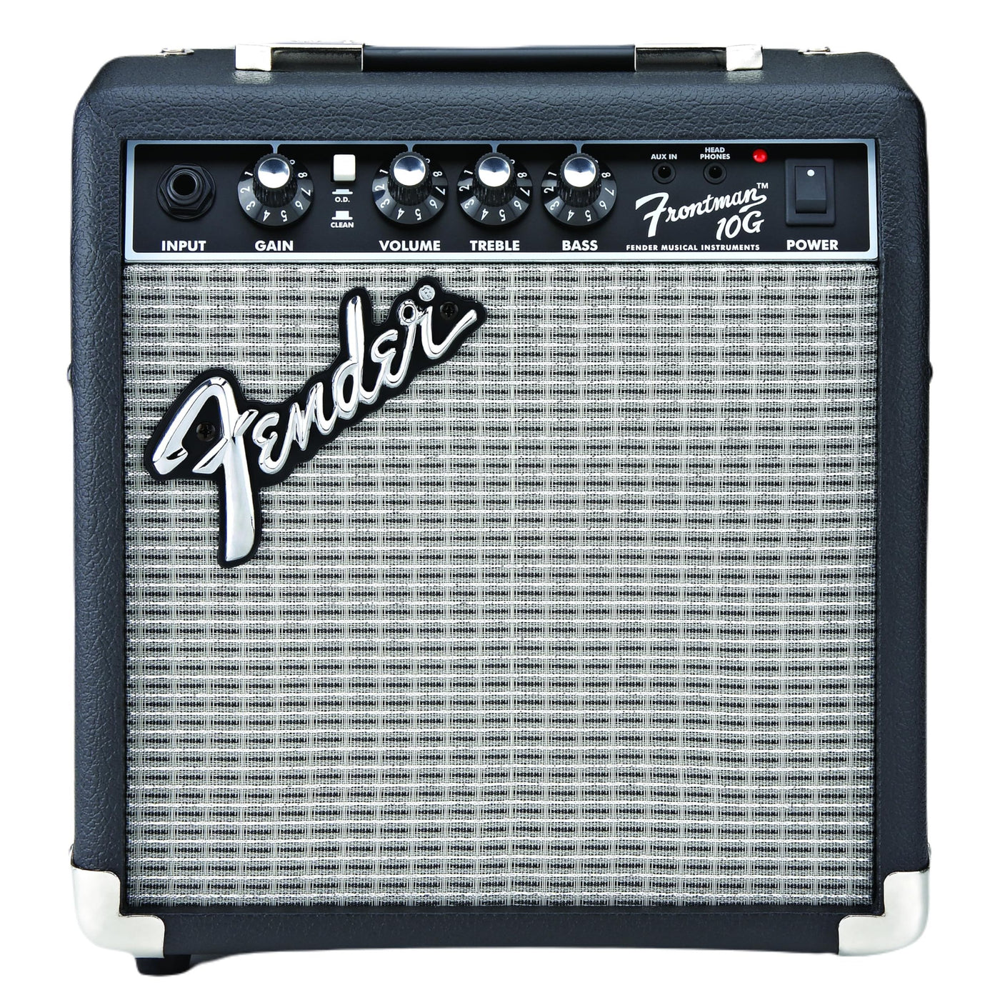 The Fender Frontman 10G Guitar Amplifier features 10 watts, 7.5Hx11.5Wx13.7D inches, 11.7 pounds