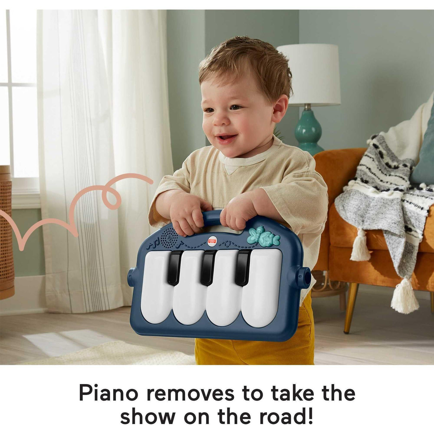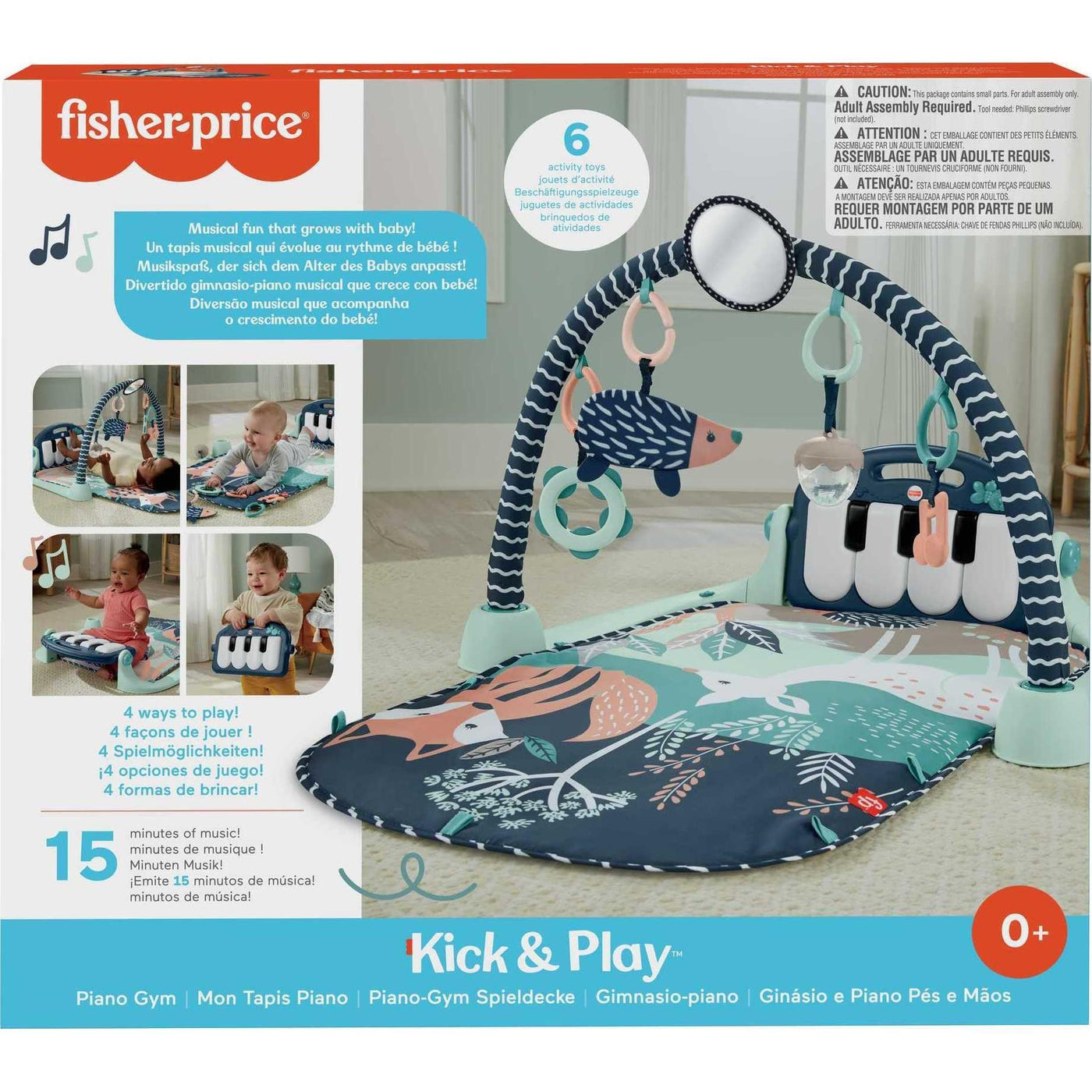 Fisher-Price Baby Playmat Kick & Play Piano Gym with Musical and Sensory Toys for Newborn to Toddler, Navy Fawn