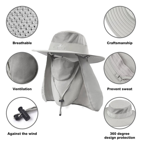 - 360° SUN PROTECTION: Flap Hats Sun Cap UPF 50+ sun protection to keep delicate skin on the neck ears and face safe from harmful rays,The whole surrounded by a large shawl , free removal, sunscreen and breathable. in addition to a removable neck flap and breathable face protector,It protects skin from the elements and the mask can protect face from dust.New sun cap with removable flaps