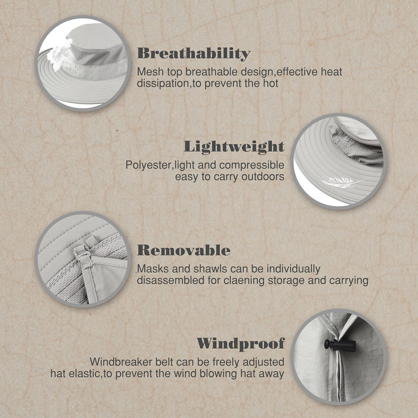 - WINDPFOOG WATERPROOF FABRIC: Mesh,absorb sweat, breathable, UV resistance.Dark cap eyebrow, absorb strongly scatter light, eye protection ,The back of the hat for the elastic fast buckle, Windproof design with adjustable chin strap ensures the hat stays put even in windy conditions .