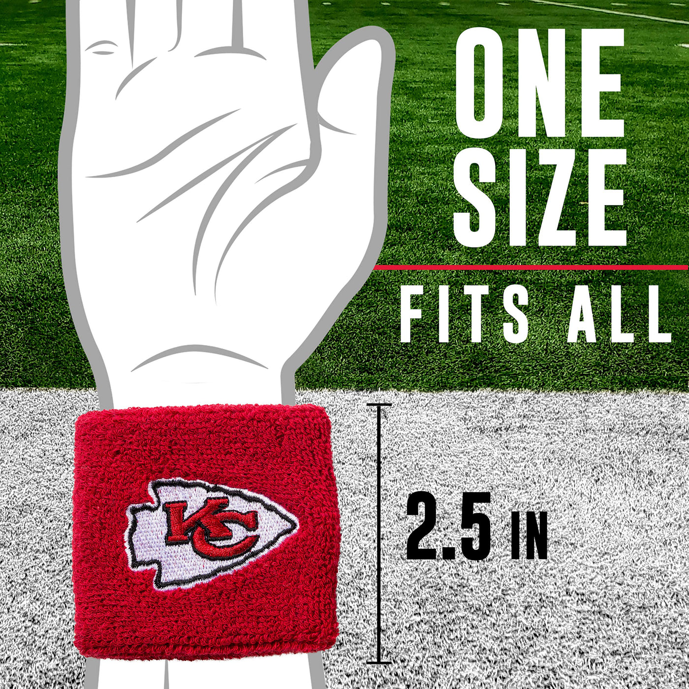 - KANSAS CITY CHIEFS WRISTBAND: 2.5" official NFL logo embroidered wristbands that are perfect for kids to look and play like their favorite NFL pros