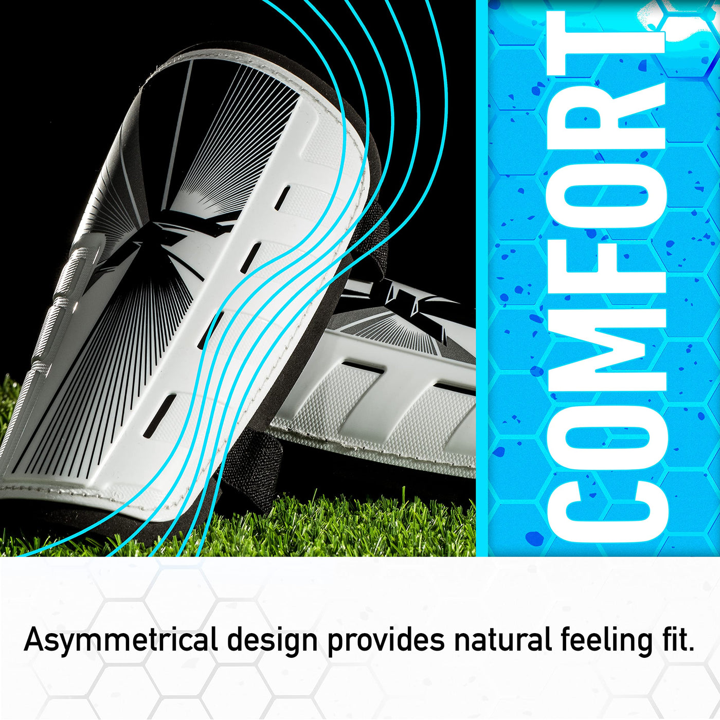 Details: Protect yourself out on the soccer field with Franklin Sports' Superlight Shin Guards! These shin guards provide extra protection for both youth and adult soccer players to reduce injury and protect from impact. Designed to be lightweight, these shin guards are made to provide protection without the bulky feeling of other shin guards. Constructed with a hard outer shield and foam-cushioned interior, these shin guards are built to absorb impact to keep kids and adults safe. Plus, these shin guards are designed with double self-stick straps to keep them in place while you play for a secure, comfortable fit. Perfect for men, women, boys and girls, the Superlight Shin Guards from Franklin Sports are a must have piece of protective soccer equipment for all players!