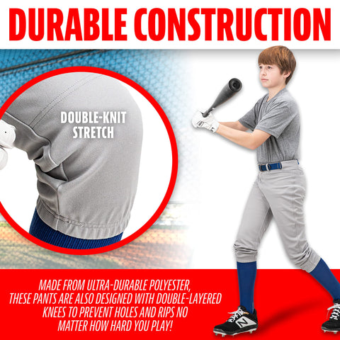 - CLASSIC BALLPLAYER LOOK: Each pant leg has a stretchy, elastic bottom which makes it easy for kids to roll the pants up to the knee for a classic ballplayer look