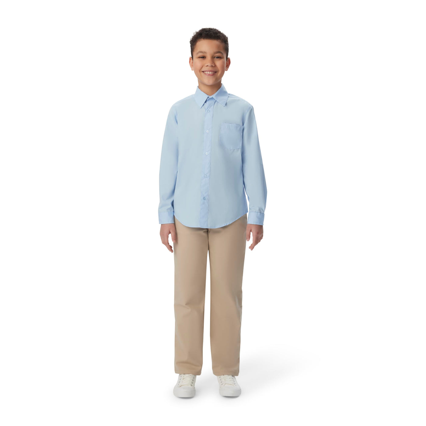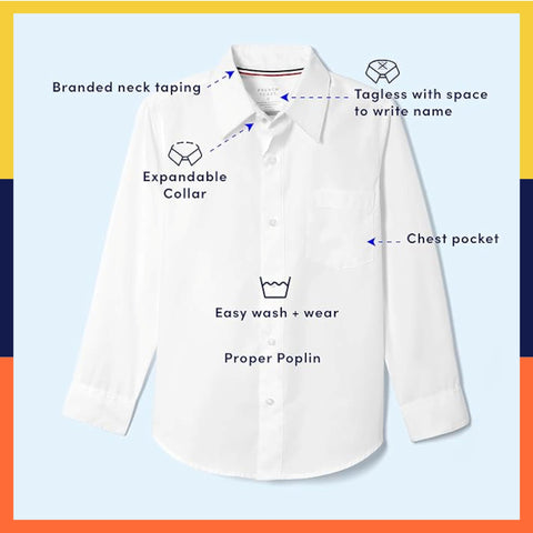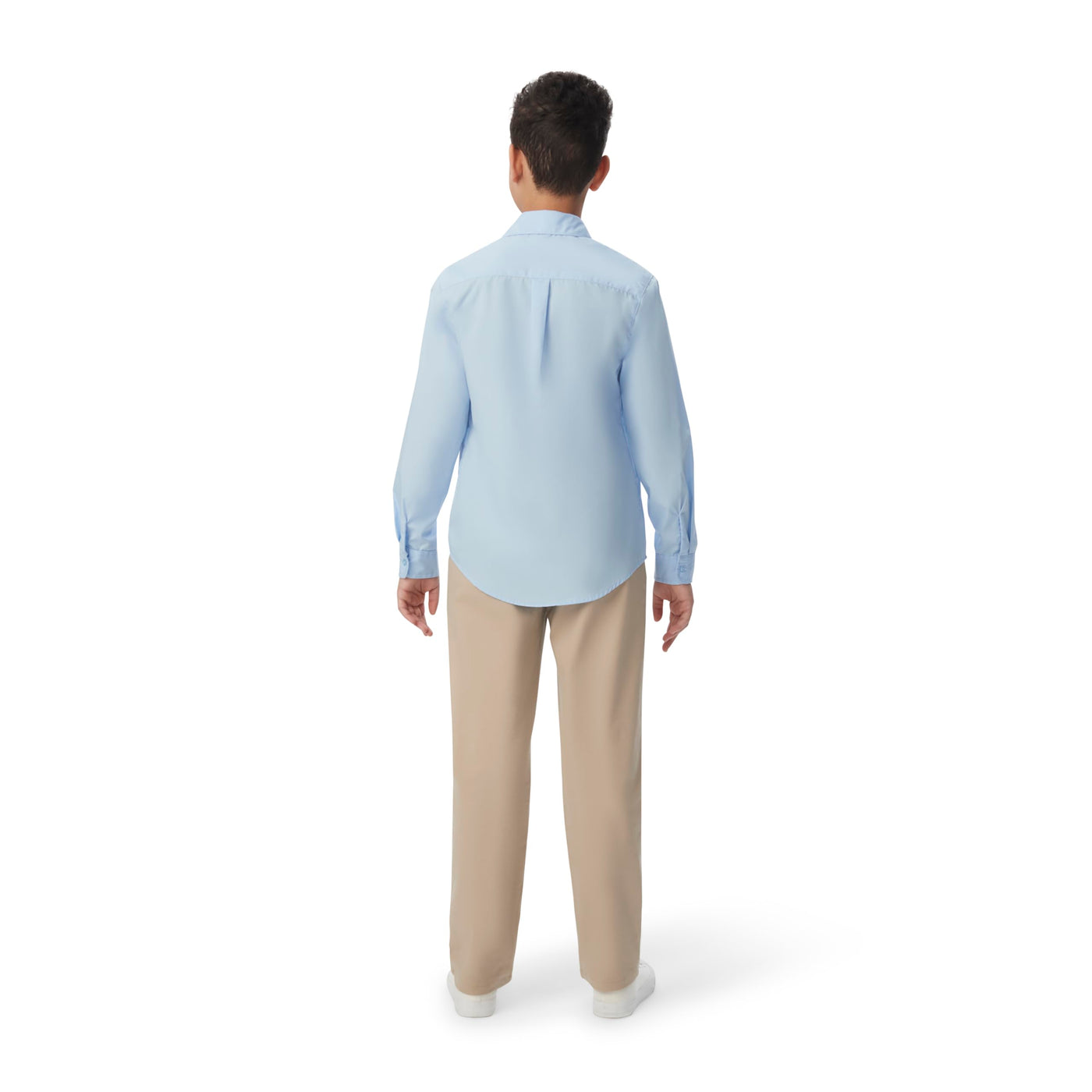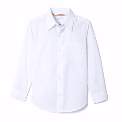 Crafted in our easy-care Wrinkle No More fabric, this long-sleeve poplin dress shirt looks freshly pressed all day. Designed with a comfortable expandable collar, it's tag free and has a neat back pleat.