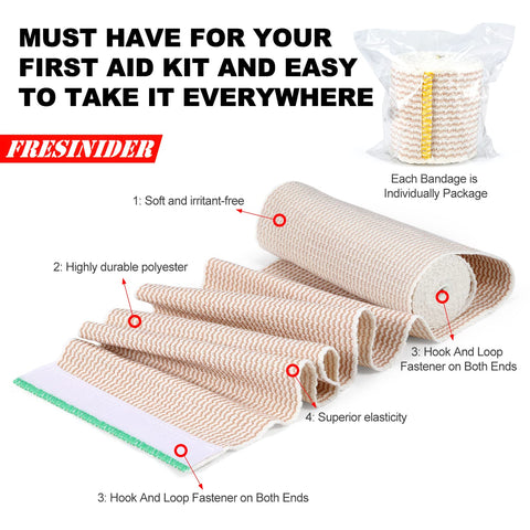 - 4" Size Options: FRESINIDER elastic bandage wraps measure 4 inches wide and come in a pack of 6. They are designed to support various joints, muscles, or injured areas, providing full coverage for injuries ranging from the calf, leg, to the head.
