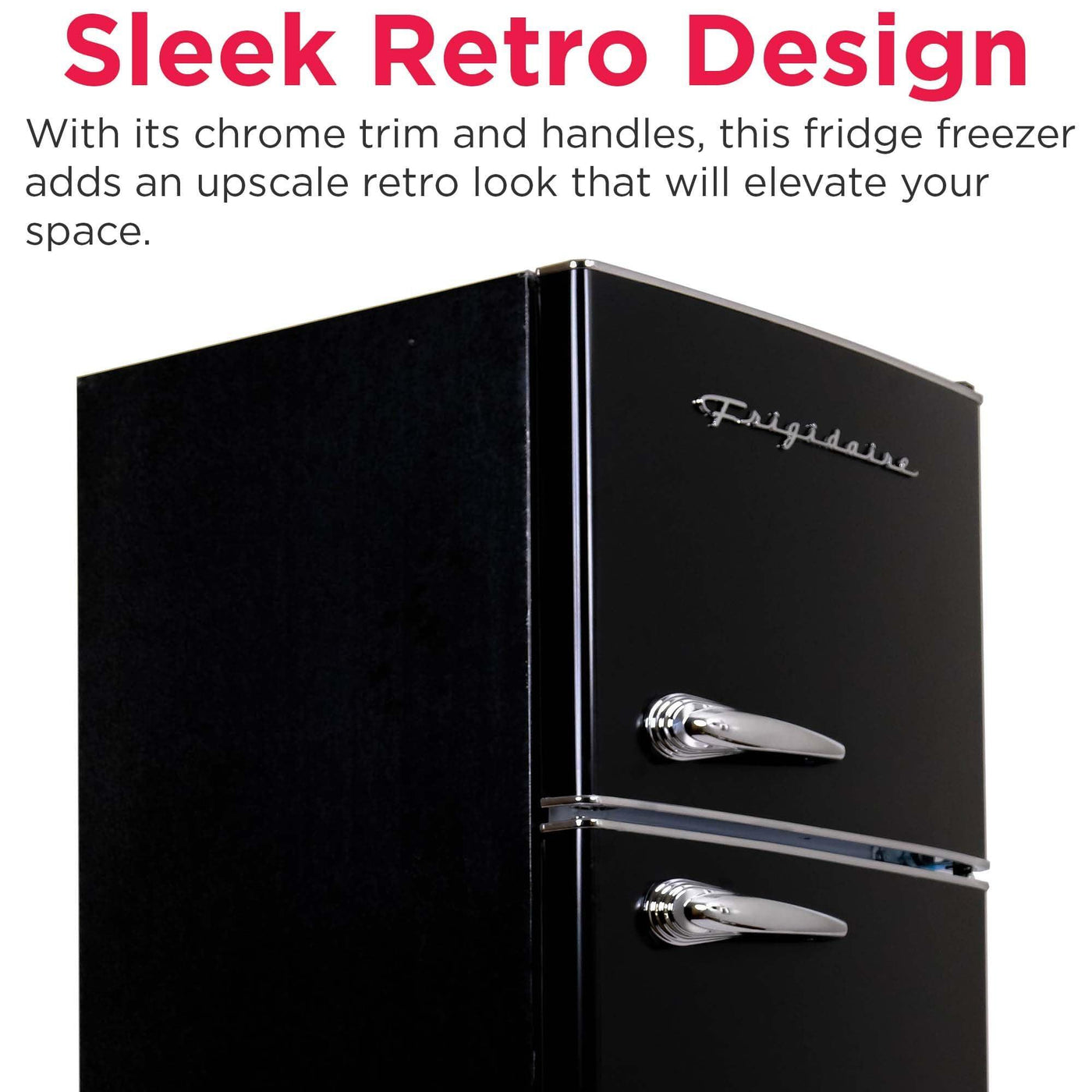 - SLEEK RETRO DESIGN: Featuring a sleek and durable retro design with chrome trim and handles, this small fridge freezer adds an upscale retro look that will elevate your space. C