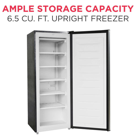 - AMPLE STORAGE CAPACITY: Easily store backup meats, frozen meals, and more with this 6.5 cu. ft. freezer that’s perfect for households of any size