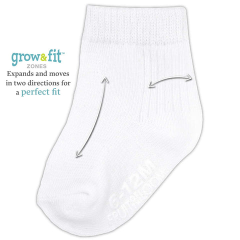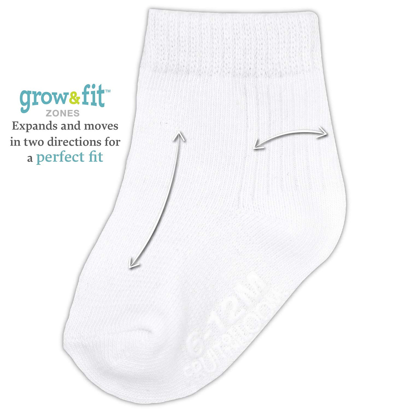 - GROW & FIT ZONES: Key ribbed areas of the socks designed for stretch so that your baby is comfortable as they wiggle & grow. These zones allow for extra stretch so they fit twice as long meaning you buy less.