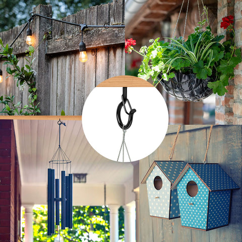 - Multi-Purpose Pack : Outdoor hanging basket eye hooks works for hanging string lights, plants, flower pots, Christmas decorative lanterns, fairy lights, festival decoration lights, curtains, wind chimes, bird feeders and cages, ropes, chains, and more.
