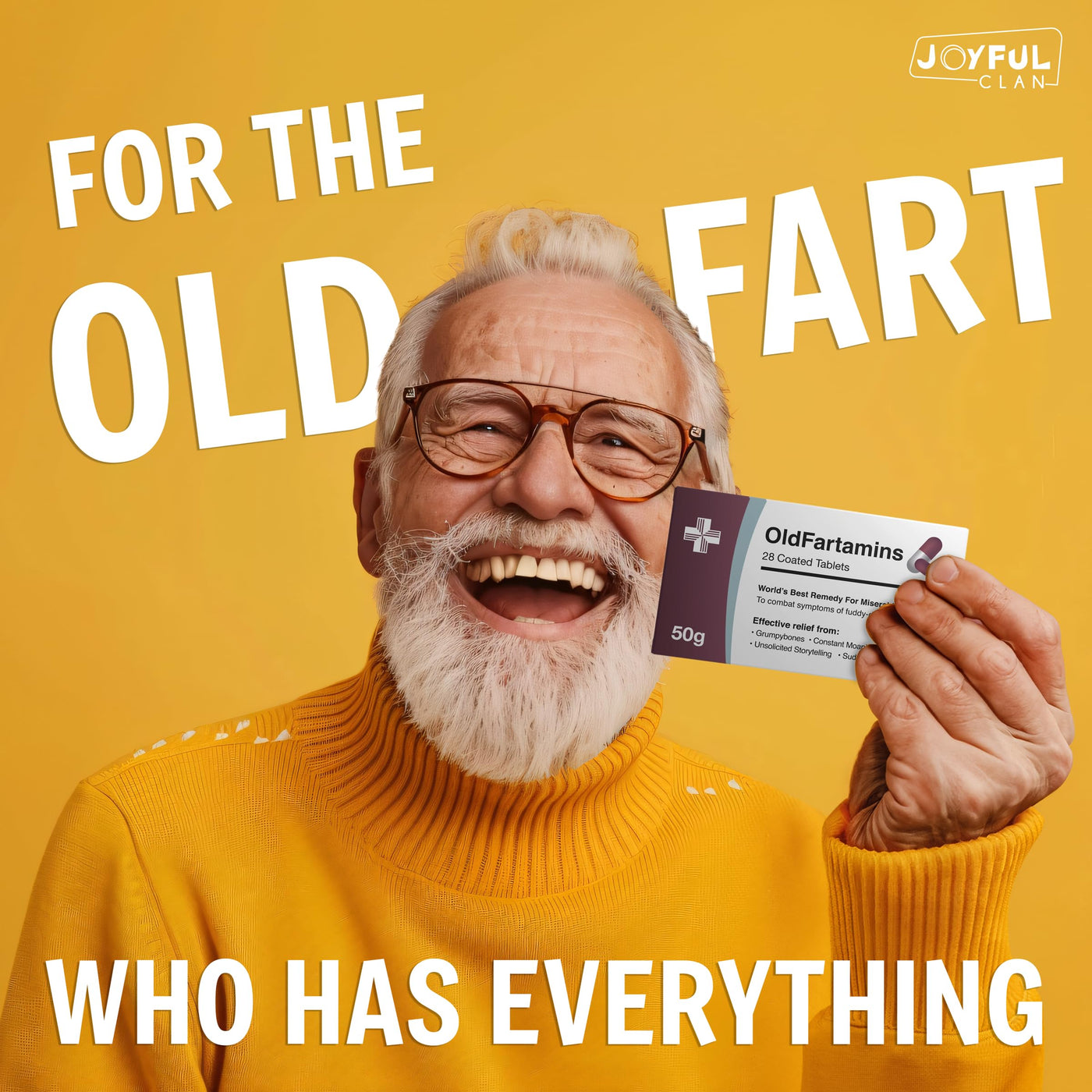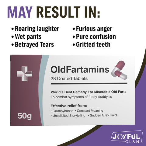 - EFFECTIVE RELIEF FROM CONSTANT MOANING – whatever their symptoms, OldFartamins offers effective relief from aging with a hearty dose of humour. Because when life gives you wrinkles, why not laugh in the face of gravity?