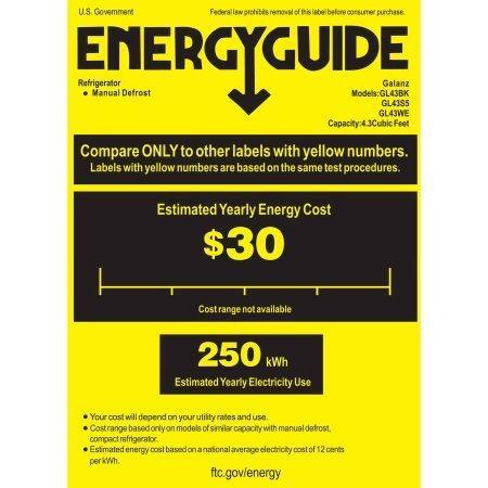 - Galanz, 4.3 Cubic feet, compact single-door refrigerator.