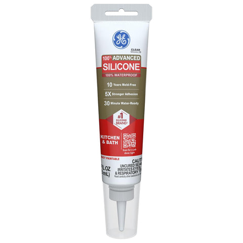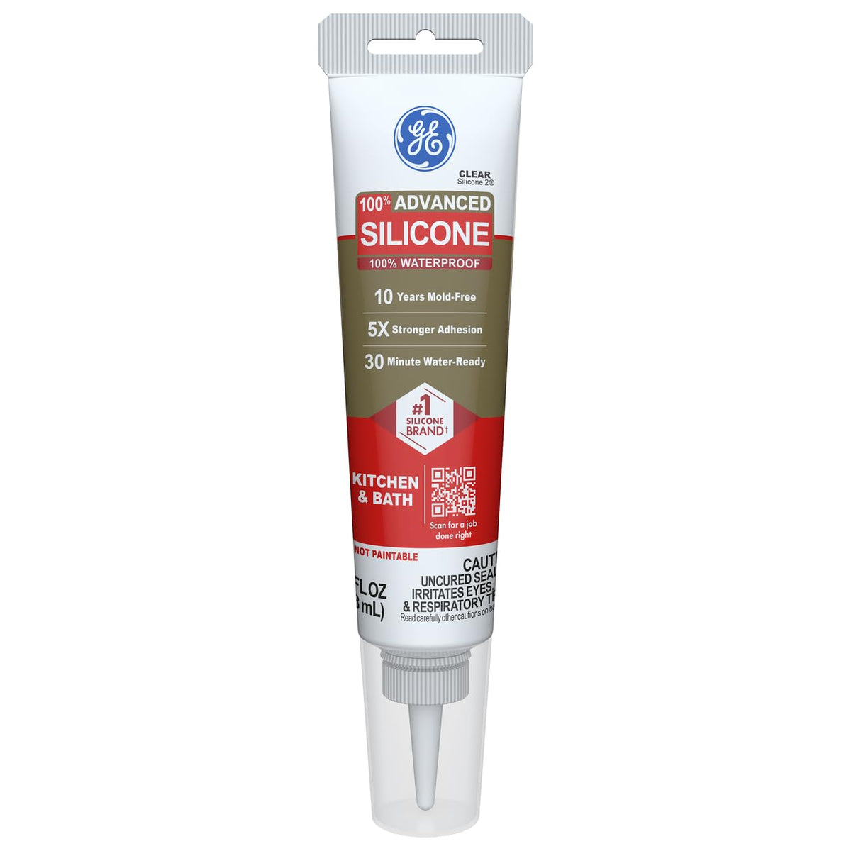 Details: GE 2812563 Advanced Silicone 2 Kitchen & Bath Sealant, Clear, 2.8-oz. Squeeze Tube, 1 Pack" or GE Advanced Silicone Caulk for Kitchen & Bathroom - 100% Waterproof Silicone Sealant, 5X Stronger Adhesion, Shrink & Crack Proof - 2.8 fl oz Tube, Clear, 1 Pack.