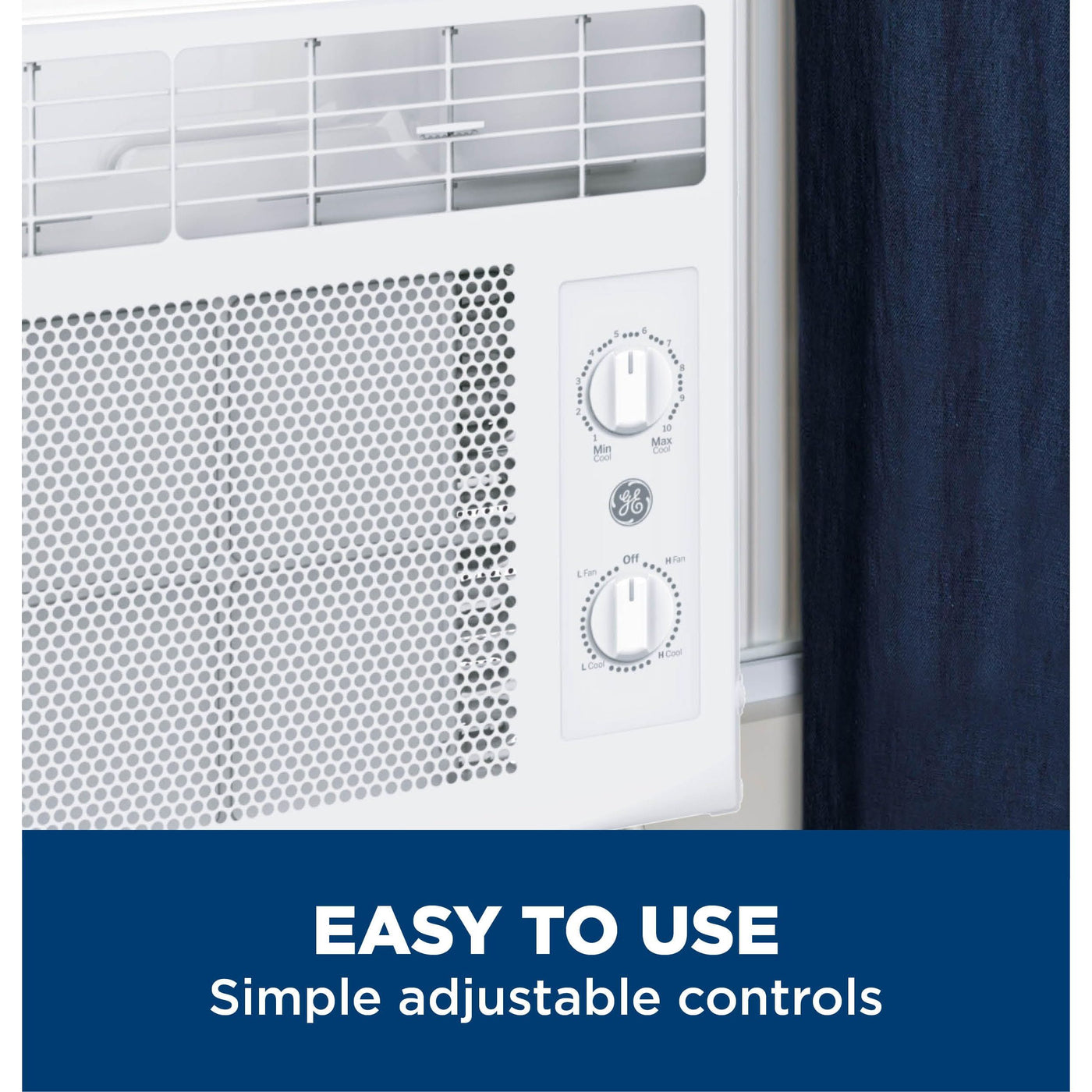 - GE 5000 BTU MECHANICAL WINDOW AIR CONDITIONER: Designed to efficiently cool rooms up to 150 sq ft; easy install kit included so you can start cooling right away.