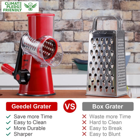 - Makes Everything Simple : Just forget your bagged cheese! Only turn the handle for several times and get fresh shredded cheese, cutting the food twelve time faster and saving more time. Go ahead for your favourite recipes with this cheese grater