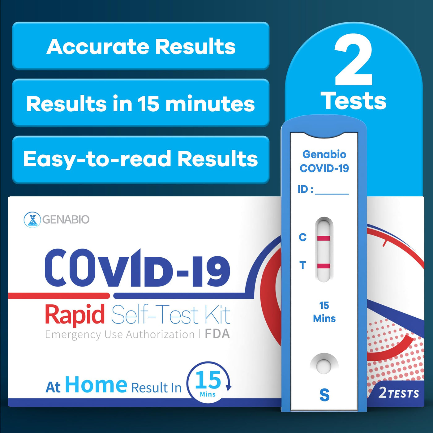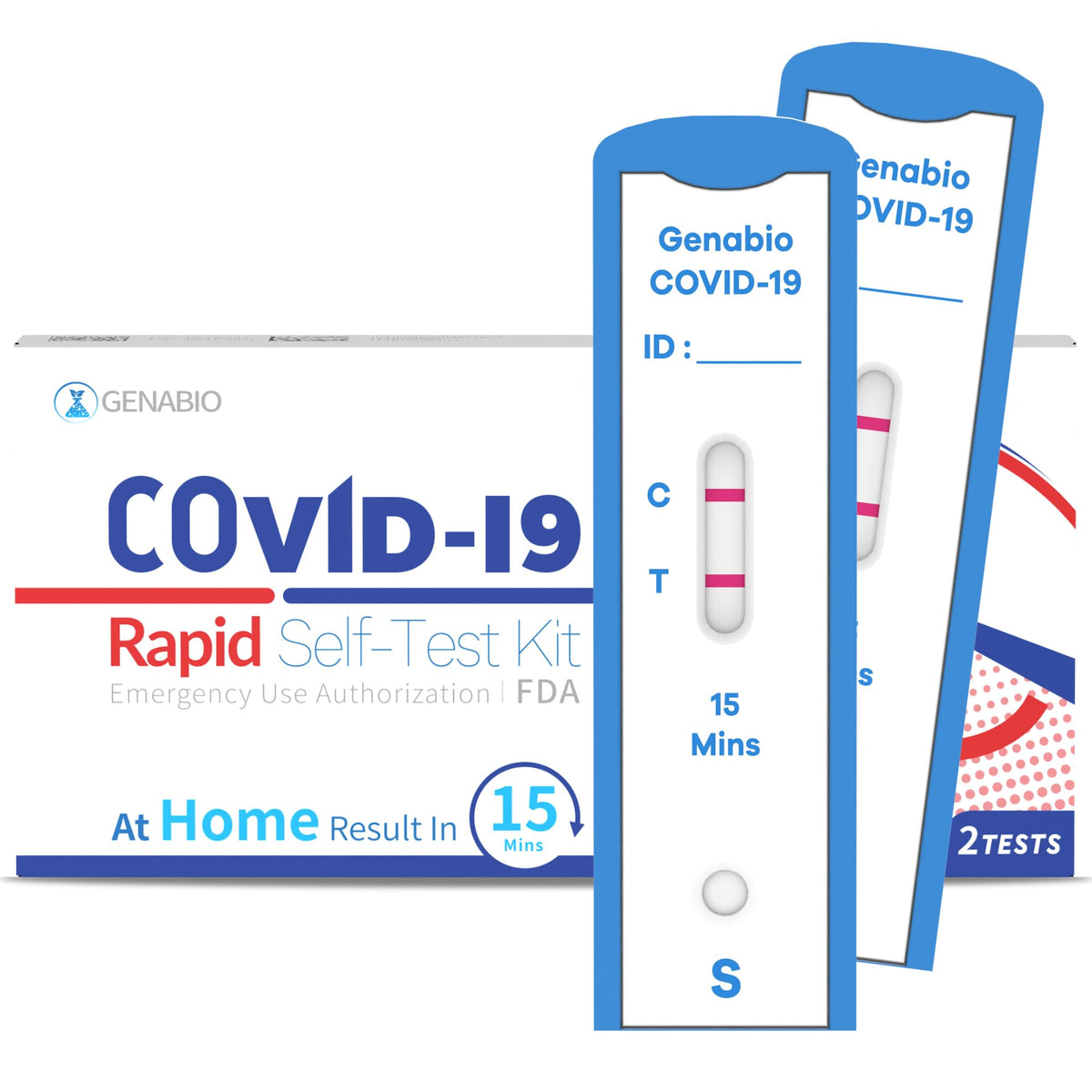 Genabio COVID-19 Antigen Rapid Self-Test Kit (2 Pack) – FDA EUA Authorized | 15-Minute At-Home Results | OTC Nasal Swab – Ages 2+ (1 Pack, 2 Tests)