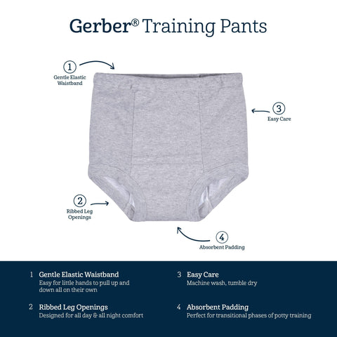 - Includes four pairs of training pants