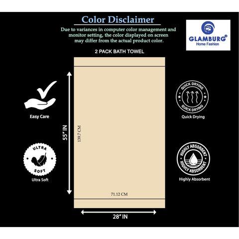 - Each set contains two (2) 100% pure cotton bath towels 28x55 Inches