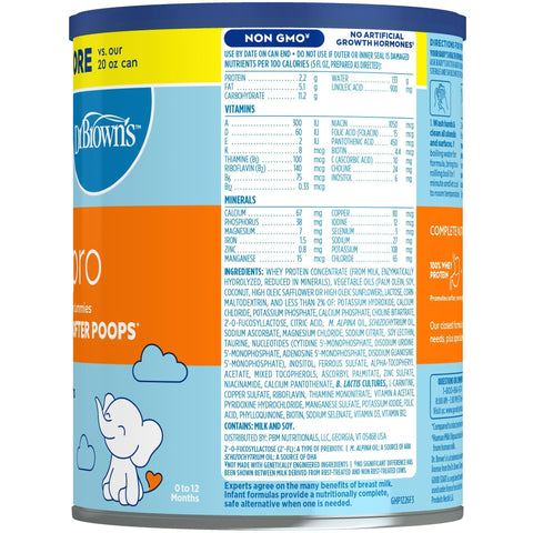 - Growth And Development: Good Start Dr. Brown's Gentle Pro and Soothe Pro powder infant formulas are the only baby formulas with a blend of DHA, HMOs & probiotics, important components like those found in breastmilk. For infants aged 0-12 months.