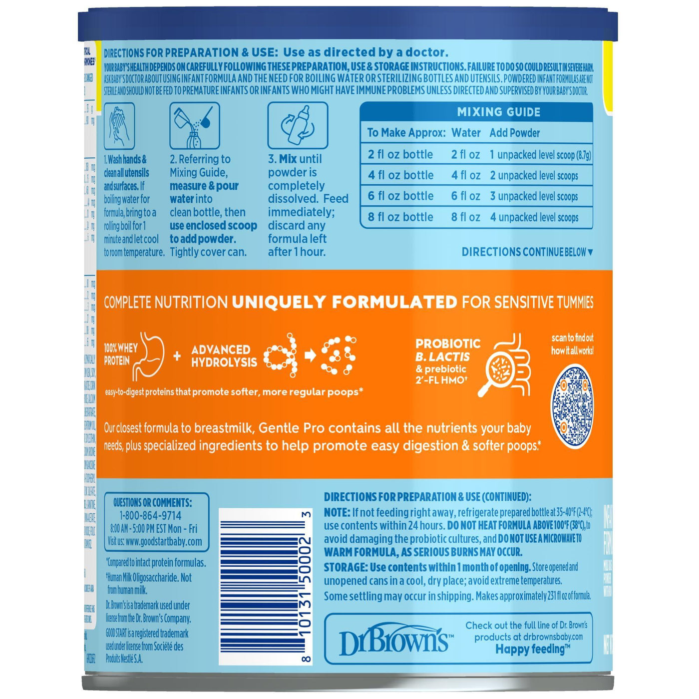 - Complete Nutrition Uniquely Formulated For Sensitive Tummies: Modeled after the gentleness of breastmilk, Good Start Dr. Brown's Gentle Pro infant formula was created to help promote easy digestion and softer poops, compared to intact protein formulas.
