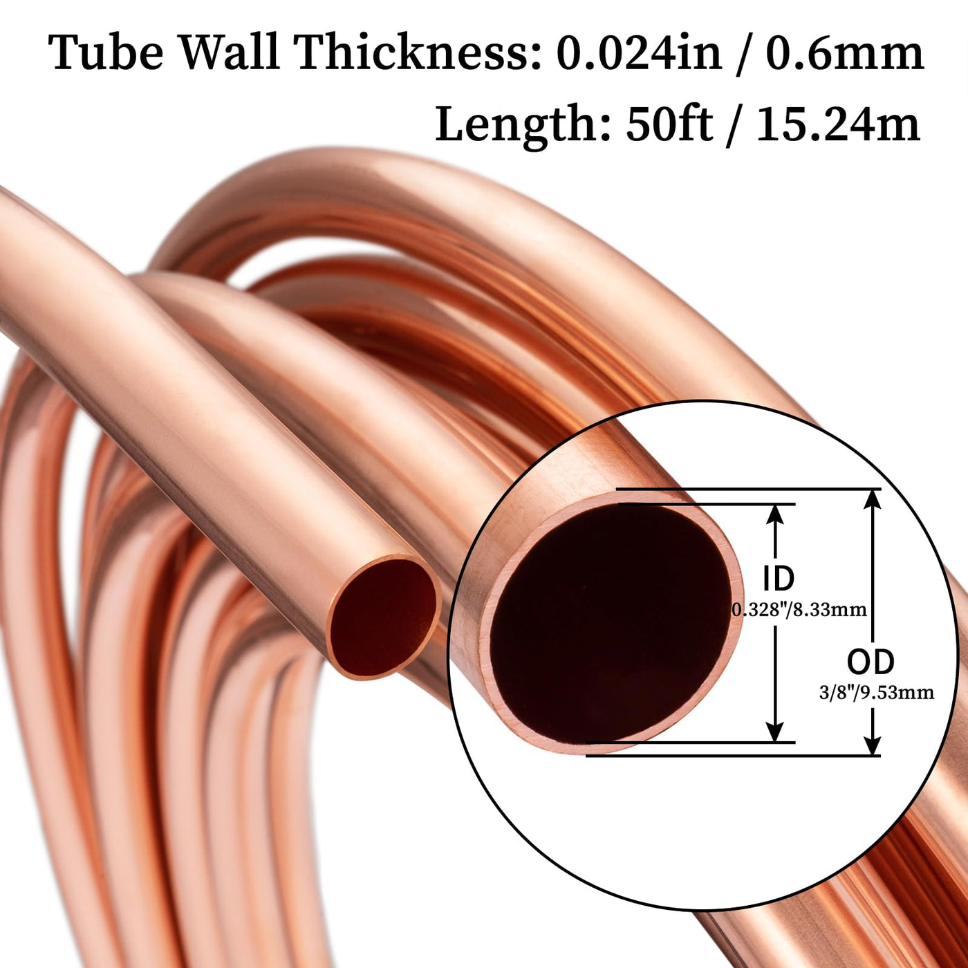 - 【Dimension】: 3/8" OD x 0.328" ID (8.331mm); Length: 50ft (15.24m); Wall thinkness: 0.024" (0.6mm); Seamless, in Coil.