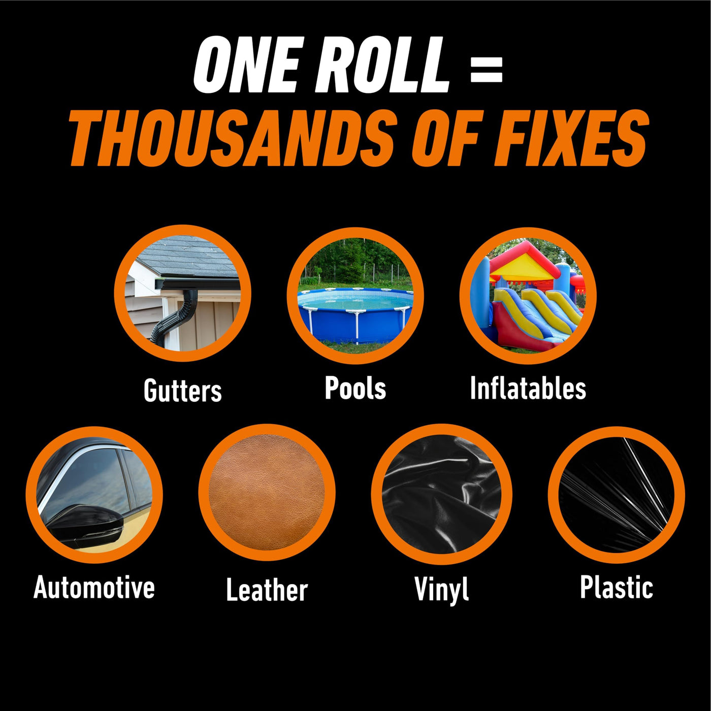 Details: Crystal Clear Transparent Gorilla Duct Tape features the strength of Gorilla Tape, in a crystal clear tape that does not yellow outdoors. Made with a heavy duty adhesive layer and waterproof backing for extreme durability. This tape is UV and temperature resistant - great for projects and repairs both indoors and out. Crystal Clear Gorilla Duct Tape is best if used between 10°F and 120°F. To prevent fingerprints, clean your hands prior to using the tape and handle the tape only at edge. Use a straight edge (credit card or similar object), to press out fingerprints. For best results, apply the tape to a clean surface. Airtight patches are best achieved on smooth, dry surfaces with the tape on both sides of the repair (when accessible). Tape size should be larger than the repair area, extending beyond all edges. Rub the entire surface of the tape aggressively, especially the edges. NOTE: Surface patch will gain additional strength with time. Crystal Clear Gorilla Duct Tape works best for patching with a single layer. Not for patching inflatables at seams. Click on the Gorilla link at the top of this page to see other quality products from the Gorilla Glue Company.