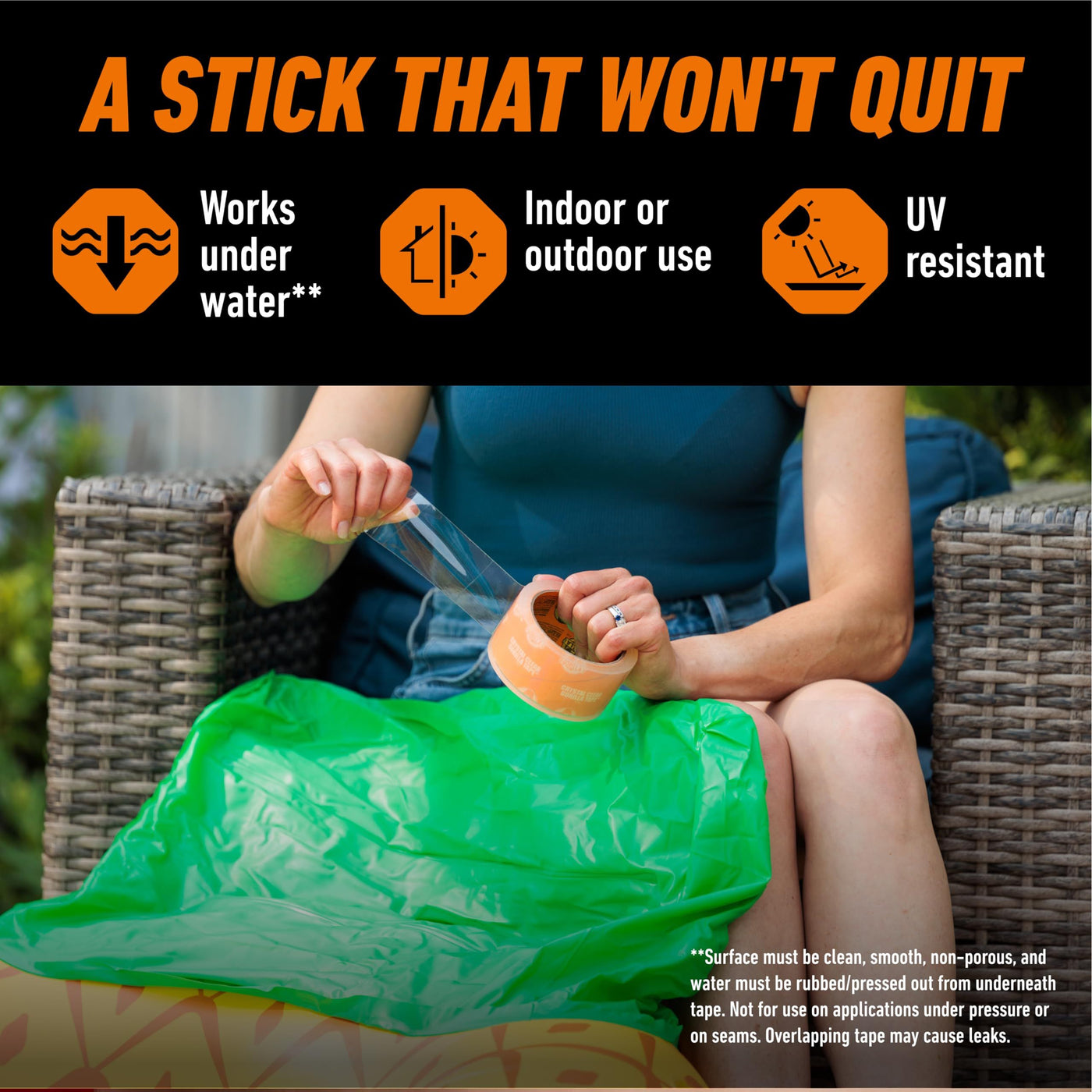- Weather resistant: The waterproof backing of this clear Gorilla Tape helps it withstand moisture, UV rays and temperature extremes