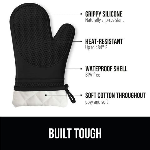 - WATERPROOF AND STAIN RESISTANT: no more constantly stained oven mitts; Gorilla Grip Silicone Oven Mitts are both stain resistant and waterproof; spills can easily and instantly be rinsed away under water; hot liquids won’t soak through and scald your skin as they would with other materials