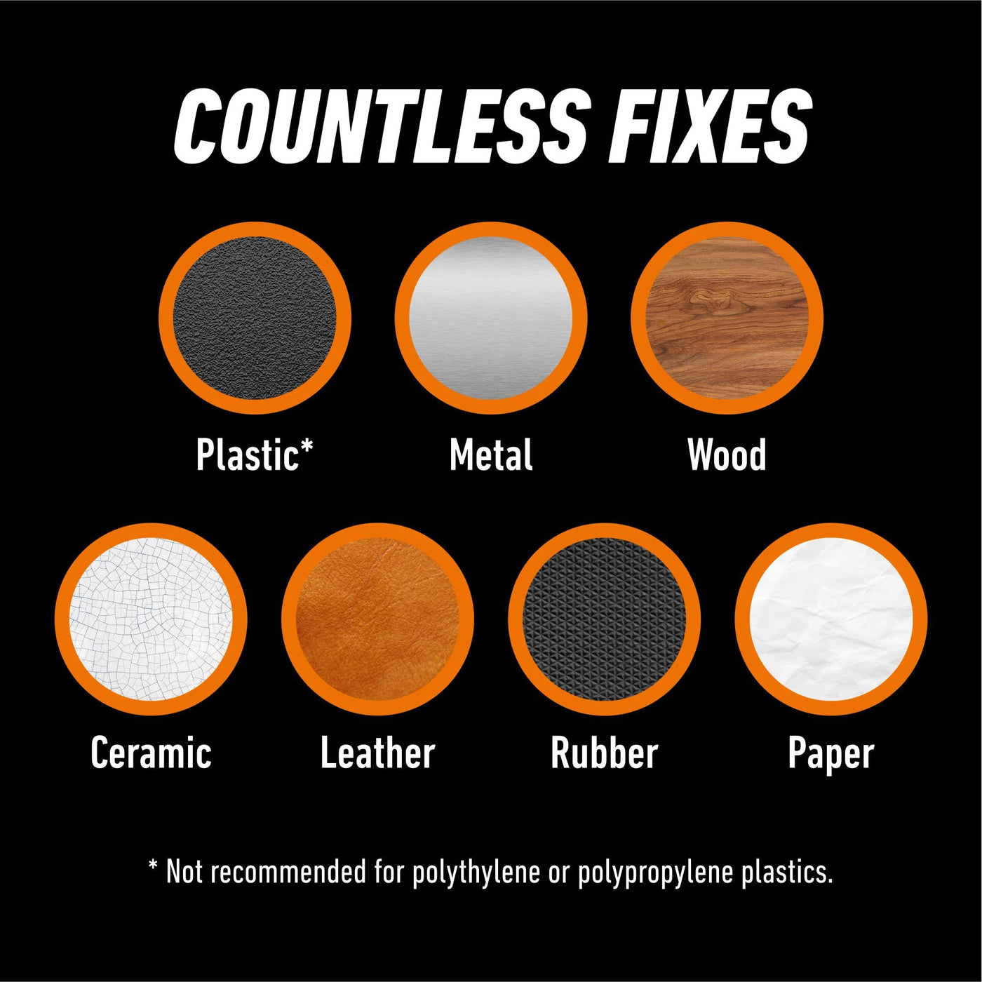 - All purpose glue: Gorilla Super Glue is formulated for virtually all projects and repairs; it bonds glass, plastic*, wood, metal, ceramic, rubber, leather, paper, and more