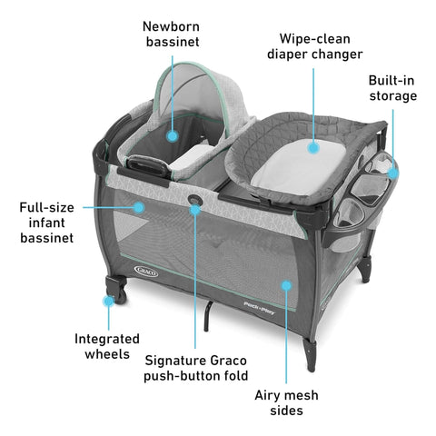 Graco Pack 'n Play Close2Baby Bassinet Playard Features Portable Bassinet Diaper Changer and More, Derby