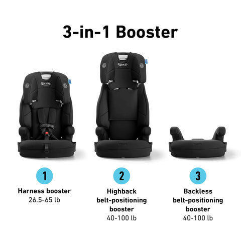 - 3-in-1 harness booster helps protect your child, from toddler to youth