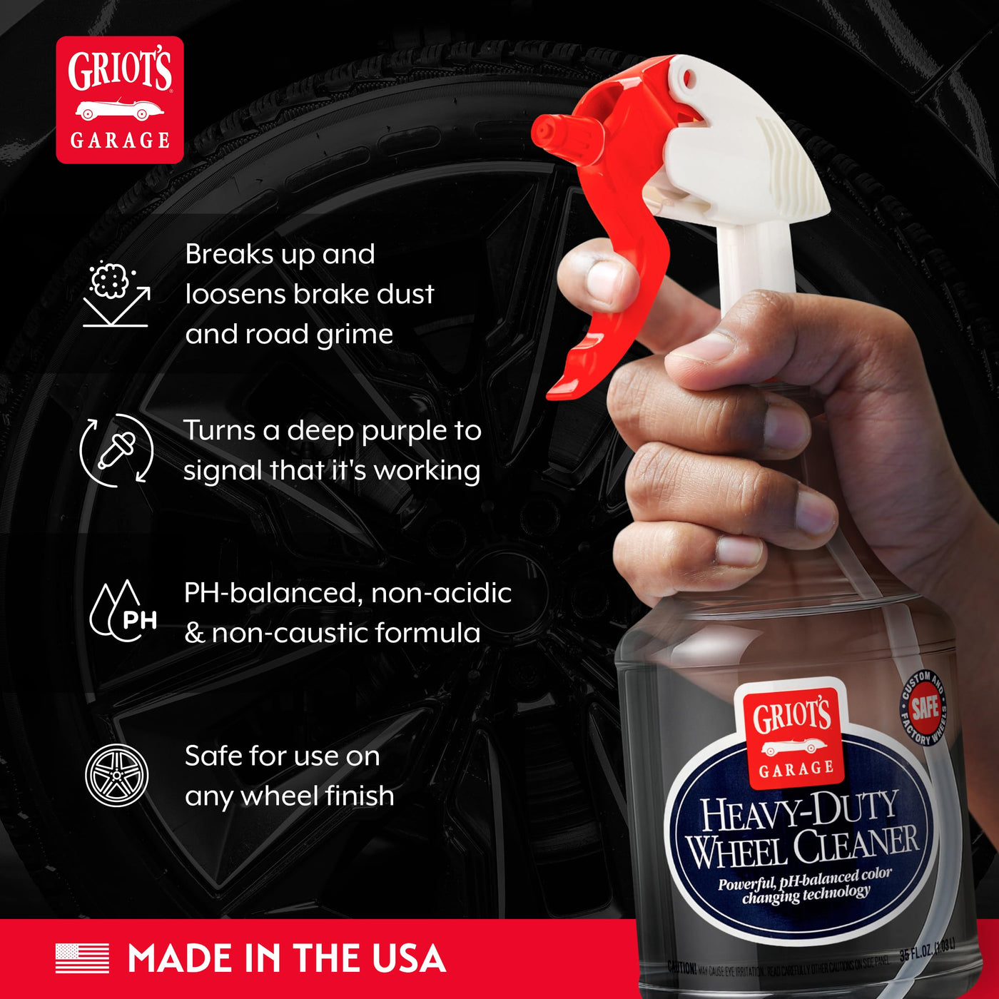 Griot's Garage Heavy-Duty Wheel Cleaner for All Wheel Finishes, Breaks Down and Removes Stubborn Brake Dust and Grime, PH Balanced, Non-Acidic, 11026, 35oz