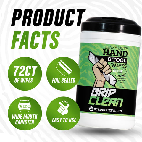 Grip Clean Cleaning Wipes – Hand Cleaner for Mechanics, Heavy-Duty Hand Wipes for Grease & Oil, Cleaning Wipes All Purpose for Tools & Surfaces, Waterless Hand Cleaner, Citrus Scented (72ct)