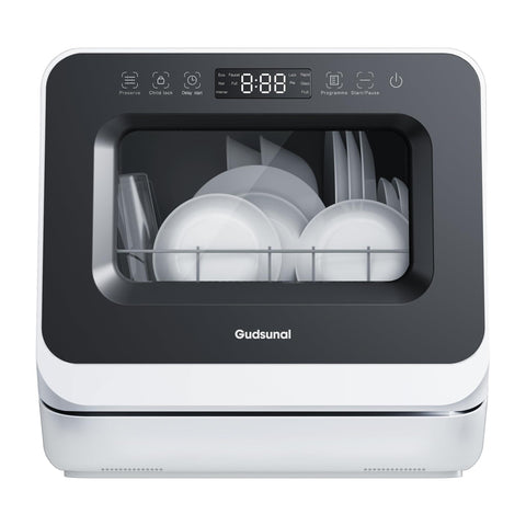 - Free Installation & Spacious: No complicated setup required! This compact portable dishwasher accommodates over 30 sets of tableware, including plates up to 10 1/4 inches. It's perfect for apartments, dorms, RVs, and camping