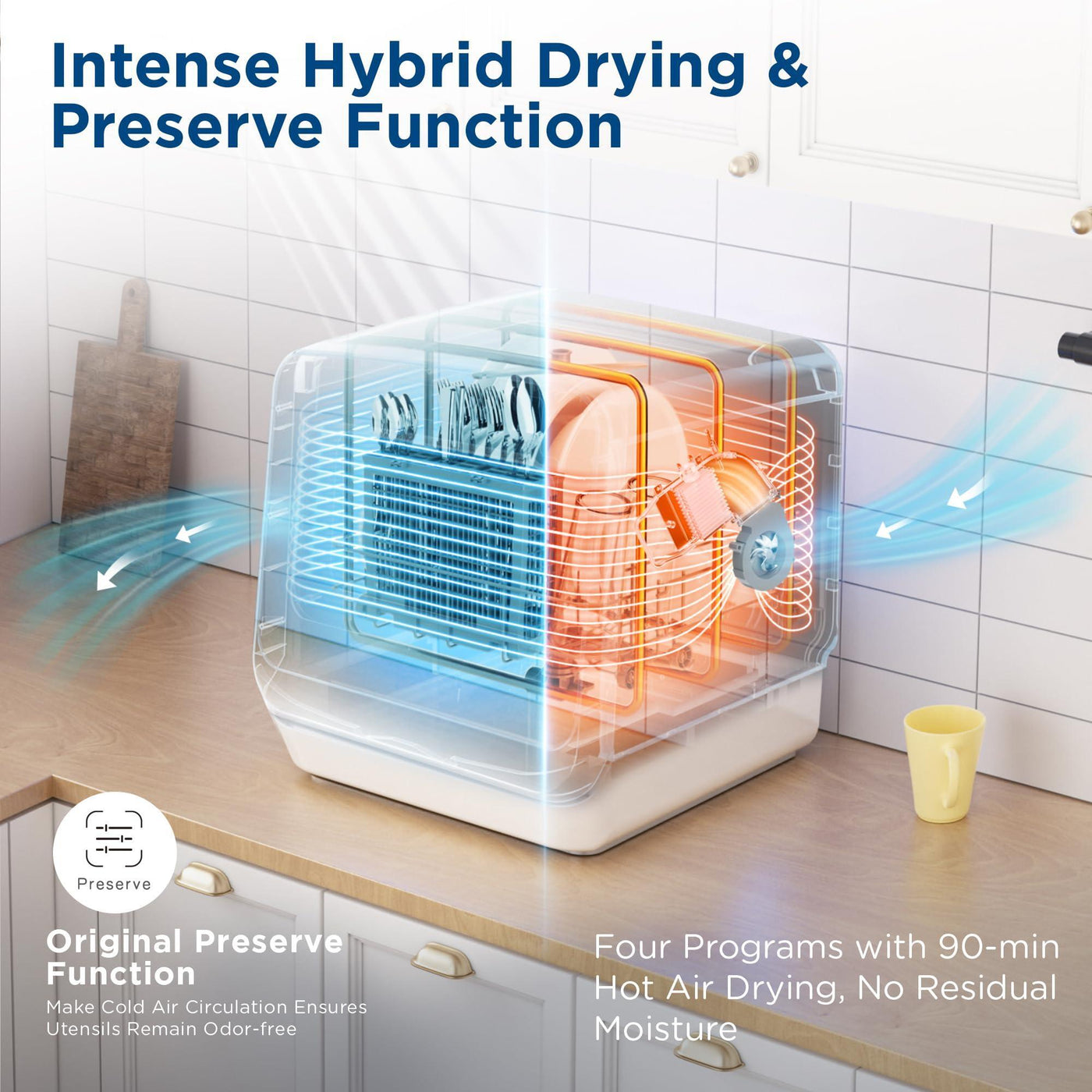 - Original Preserve Function: This countertop mini dishwasher runs a preservation function after washing, with fan ventilation every 3 hours for 18 minutes within 24 hours, ensuring utensils remain odor-free and fresh