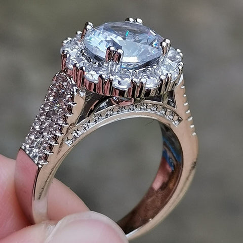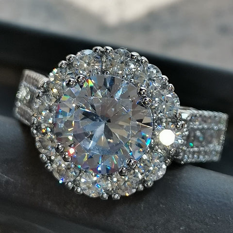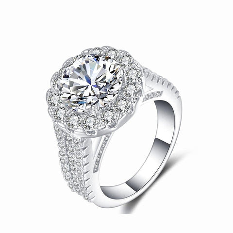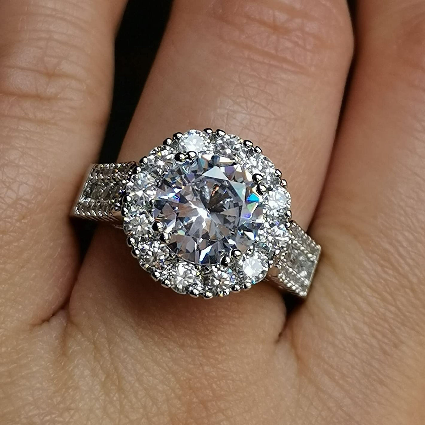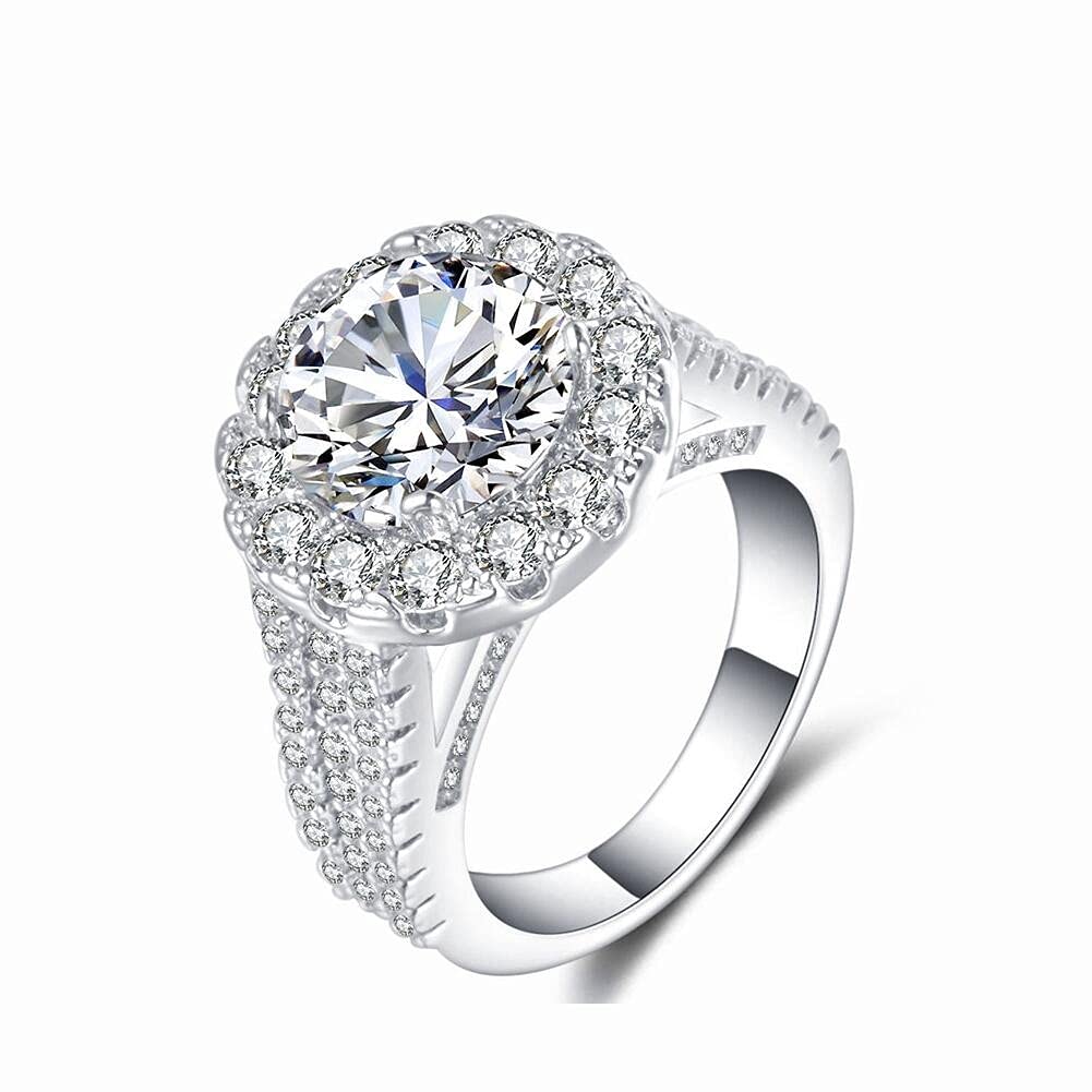 GUIDECUN Halo Art Deco Wedding Engagemen Ring for Women Fashion 925 Sterling Silver Plated Classic Round Cut White AAA Cz Size 6-10 (US Code 6) Sale