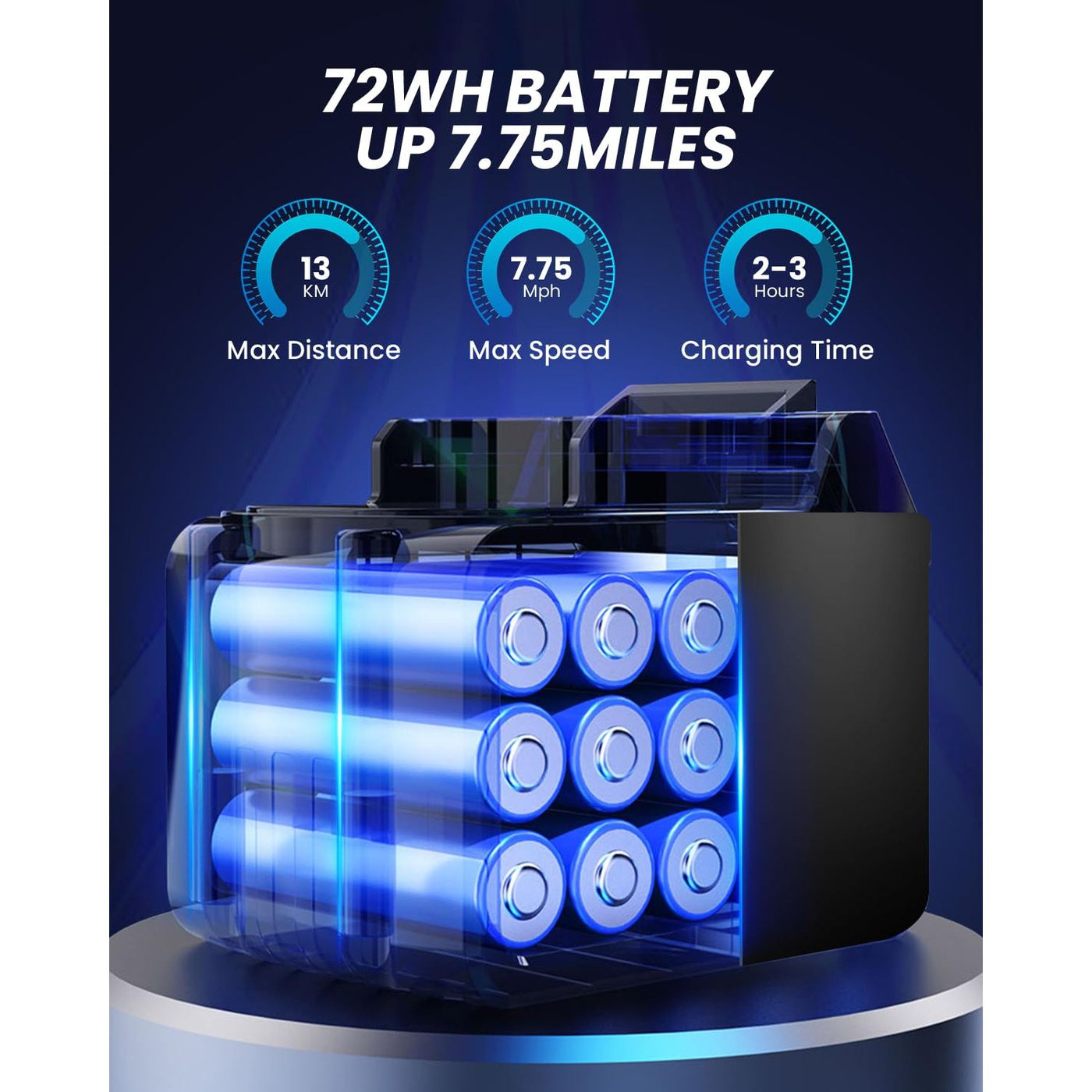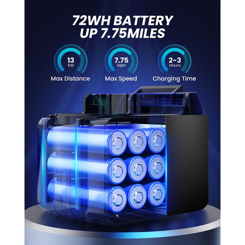- Light Your Way - Cool LED lights on the wheels of the balancing scooter for kids ages 6-12 and bright dual LED headlights illuminate the road ahead, completely attracting the attention of the children and making the riding more fun for the children. Kids adult balancing scooter has a 37V/2Ah lithium-ion long-lasting battery and can travel up to 8 miles on a full charge.