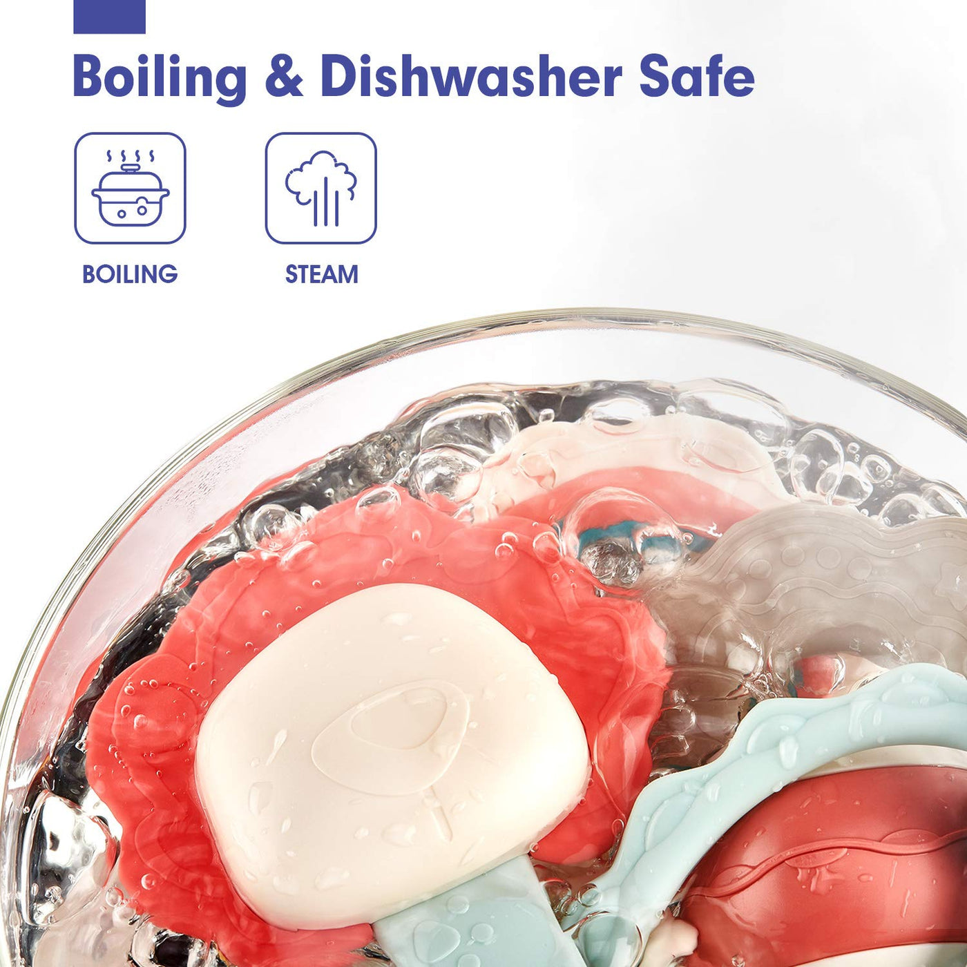 - Safe and Durable Materials: All 10 toys in our set are made from non-toxic materials, have smooth edges & are burr-free. They're strong enough to withstand chewing but large enough not to be a choking hazard, making them safe for your curious baby to touch, chew & gnaw on. Conveniently these toys are dishwasher safe, allowing quick & easy cleaning & sterilization using steaming, boiling, or ultraviolet light. All toys are individually wrapped in clear bags & come in a large storage container