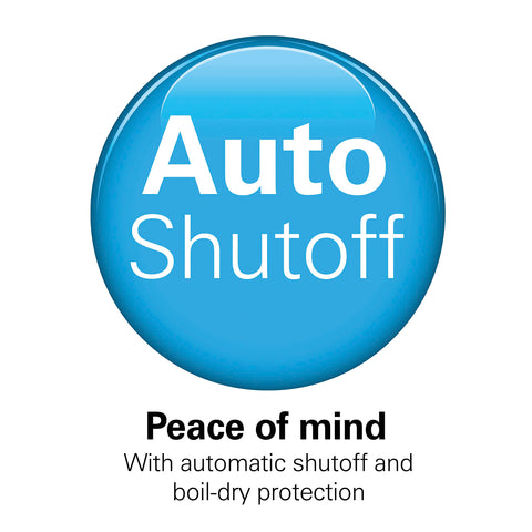 - Automatic shutoff for peace of mind. The automatic shutoff function turns the electric water kettle off when water comes to a boil and the boil-dry protection function keeps the electric teapot from scorching if the water level gets too low.