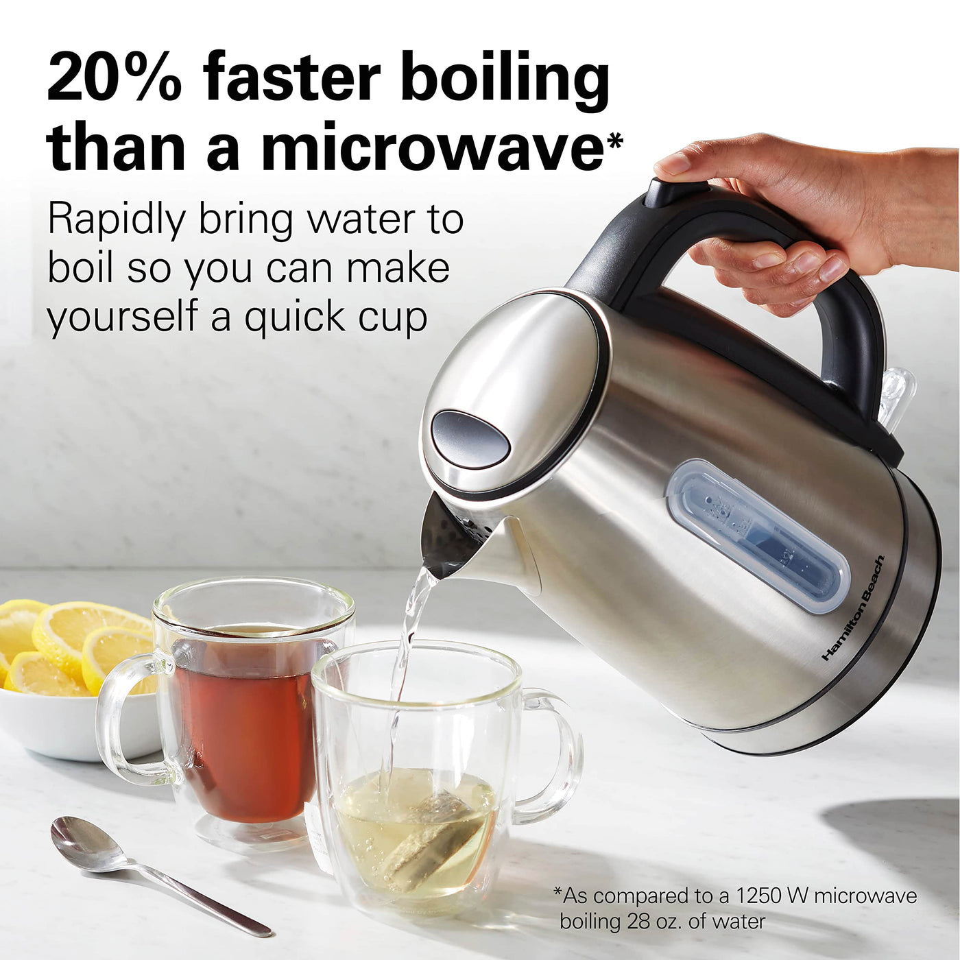 - 20% faster boiling than a microwave. Rapidly bring water to boil with so you can make yourself a quick cup of tea, hot cocoa or coffee without the long wait — perfect for hectic mornings or anytime you need hot water fast. 1500 watts for fast boiling.