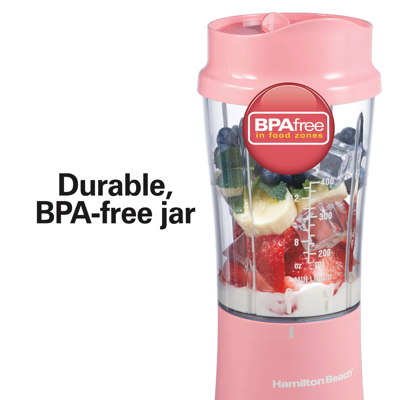 Hamilton Beach Portable Blender for Shakes and Smoothies, 14 Oz BPA Free Travel Cup & Lid, Durable Stainless Steel Blades, Personal Smoothie Blender, Coral (51171) Sale