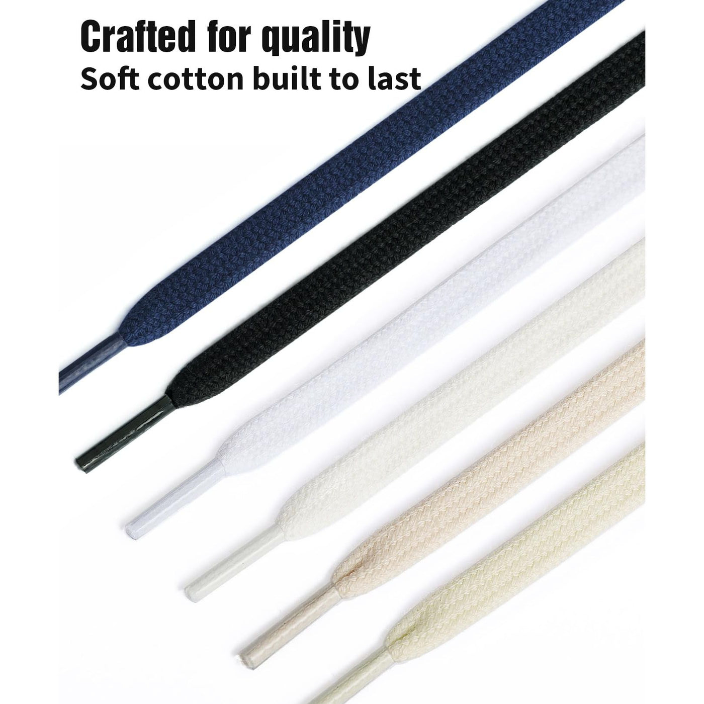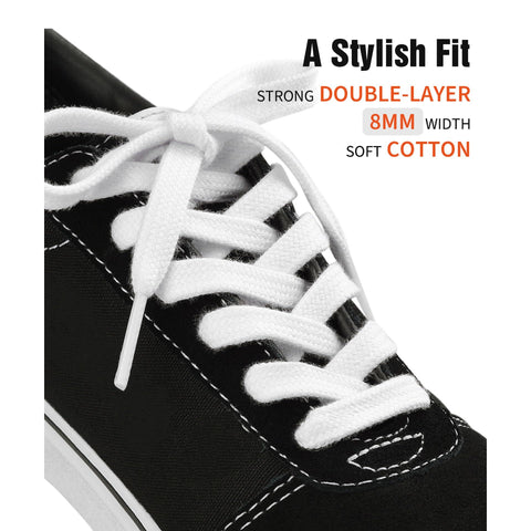 - Width - 5/16" (8 mm) High quality flat athletic laces. 2 Pair (4 laces) / Material: cotton