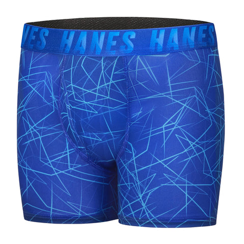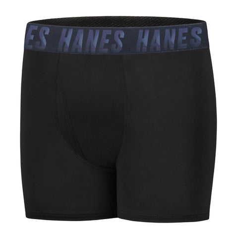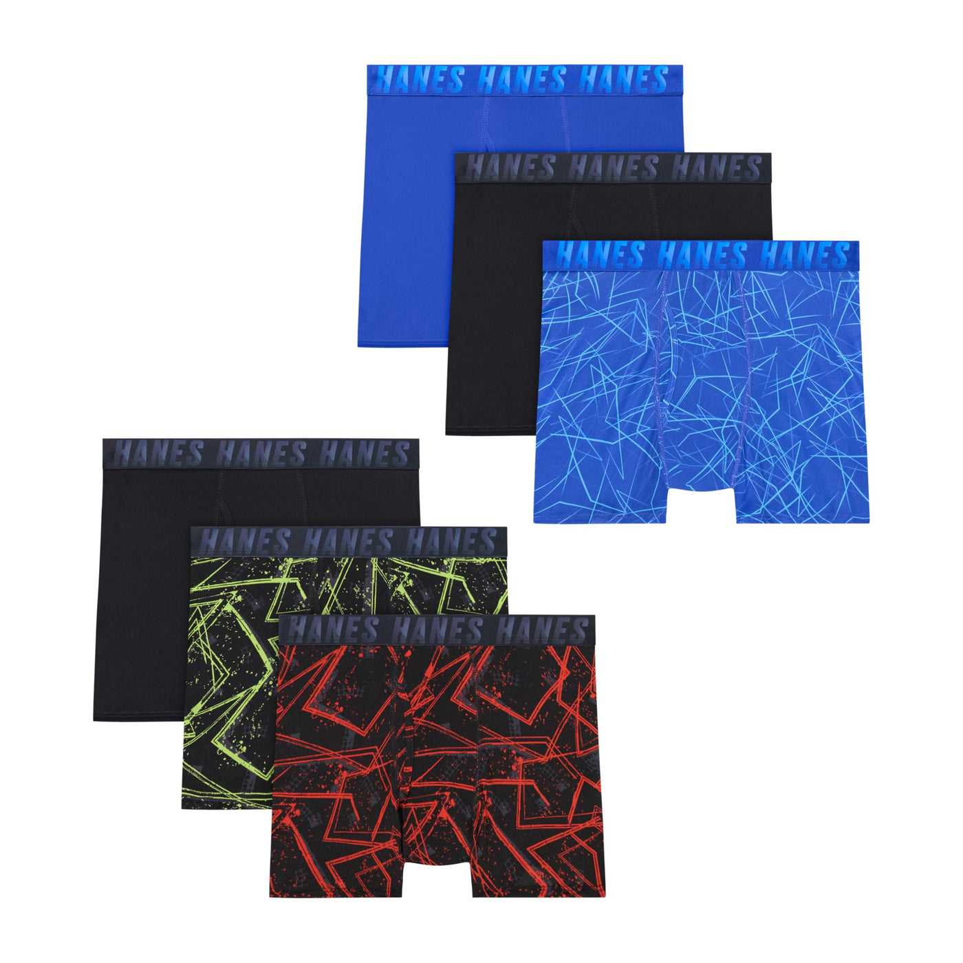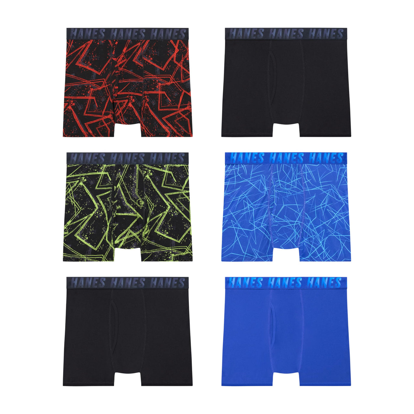 READY FOR ANYTHING For the boy who’s always in motion, Hanes Moves™ Performance Stretch Boxer Briefs keep up with every twist, jump, and move. These boys’ boxer briefs feature quick-drying breathable fabric with 4-way stretch for maximum flexibility and a no-ride-up fit - so nothing holds him back. The moisture-wicking design offers odor control, and X-Temp™ technology, keeping him fresh and cool no matter what the day throws at him. And, a Tagless® design means no more scratchy tags bunching up. Grab this 6-pack, so he's always prepared for anything - from big adventures to everyday wins. Hanes Moves. Everyday comfort and performance solutions for boys.