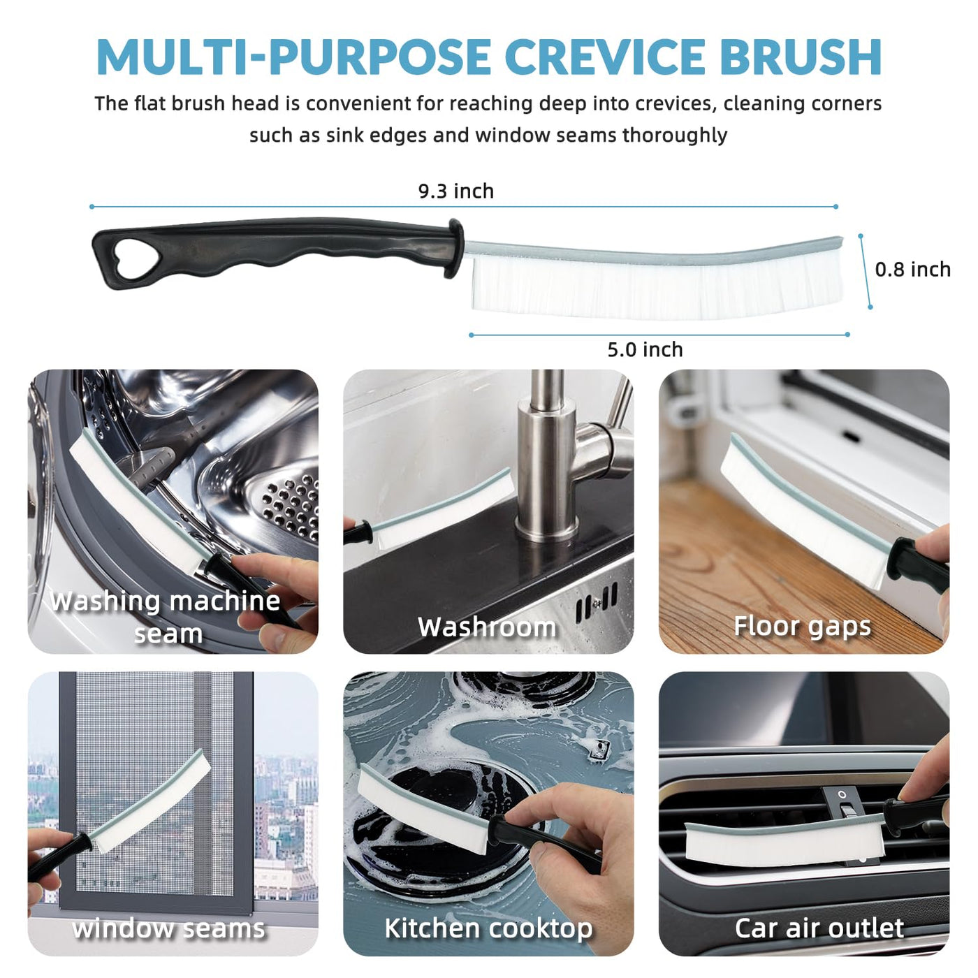 - Versatile Application: This compact scrub brush is designed to clean various corners and gaps, including faucet bases, shower door grooves, floor tile grout, and more. It's suitable for tasks ranging from kitchen stove tops to car interiors, ensuring comprehensive cleaning