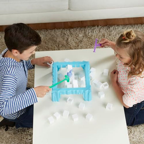 - INDOOR GAME FOR AGES 3+: The object of this game for kids is to keep Phillip the Penguin on top of the ice, but as the game goes on, the ice blocks start falling. One wrong block and he'll go ker-plop.