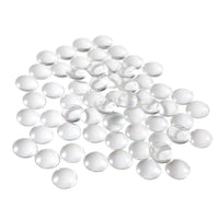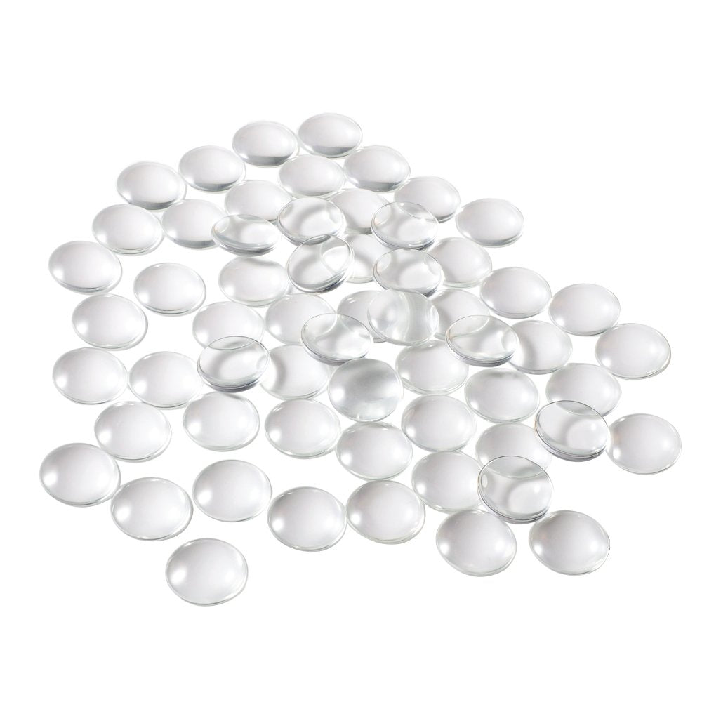 - Glass cabochon with non-calibrated round and flat-back design has a slight magnifying effect