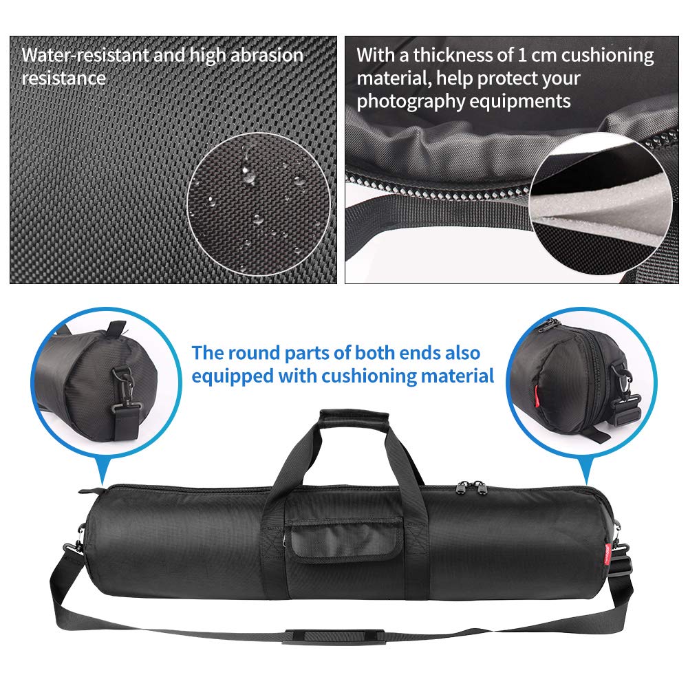 - Thick Protective Cushioning: All sides of the tripod case are equipped with a thickness of 1 cm cushioning material to your equipment from damage. It is easy to transport your travel camping pole, camera tripod, fishing rod, mic stand, tent pole and more