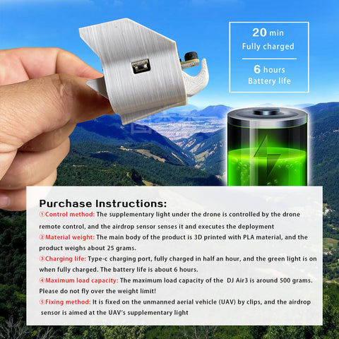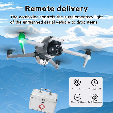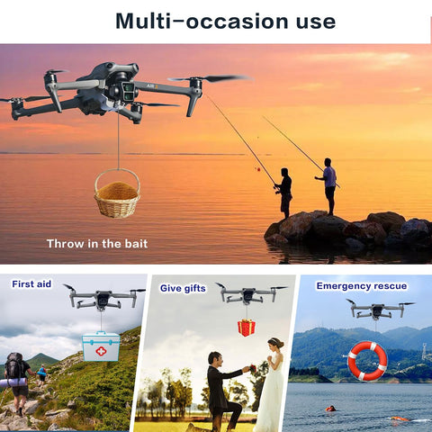 - 【 High strength material, compatible with diverse loads 】 Made of high-strength ABS material, it can support up to 200 grams (compatible with Air 3 power performance) and can hold items such as lifelines, first aid kits, flower gift boxes, etc. Quick release design enables 3-second installation and seamless switching between shooting and transportation modes.