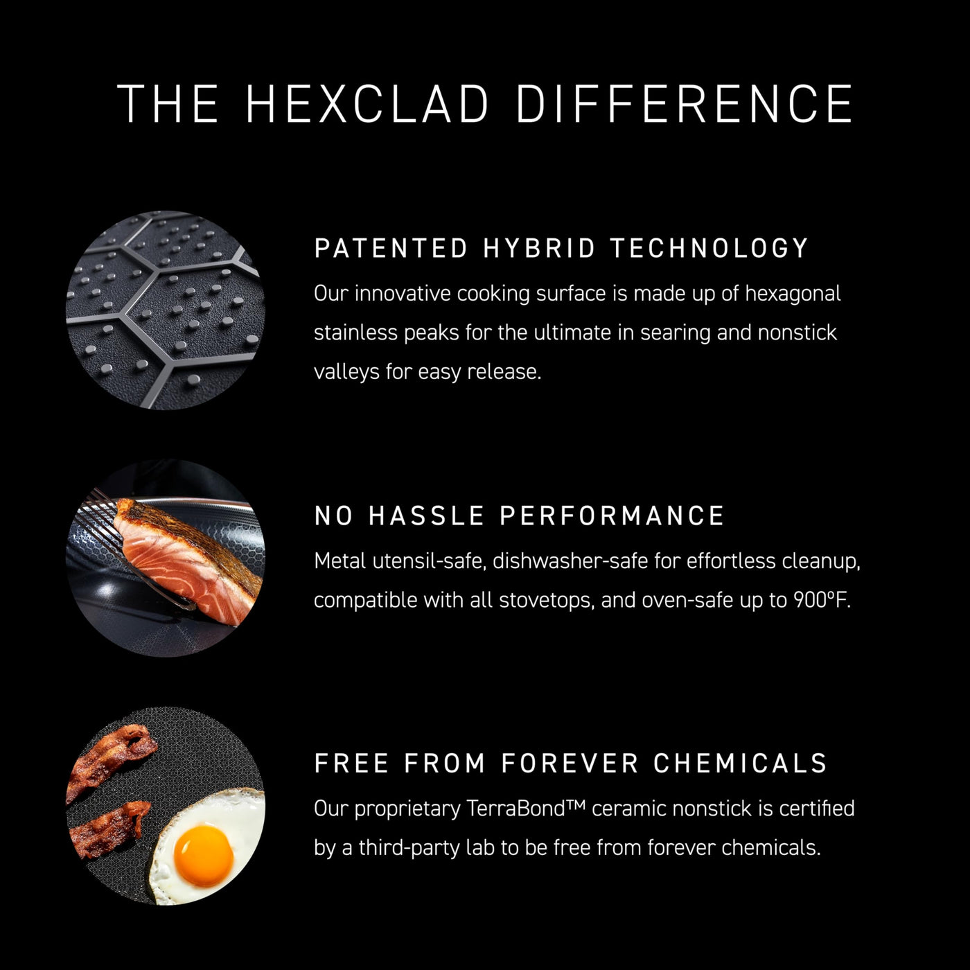 HexClad Hybrid Nonstick 10-Inch Frying Pan with Tempered Glass Lid, Stay-Cool Handle, Dishwasher-Friendly, Oven-Safe Up to 900°F, Induction Ready, Compatible with All Cooktops